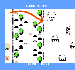 灯台を破壊して橋代わりにして対岸へ渡ろう。 灯台の近くでAボタンを長押しして『ピッ』という電子音がしたらそのまま移動。 するとTNTを仕掛けて導火線を引くので、その状態でボタンを離すと引火し、爆発し灯台が倒れるという寸法だ。