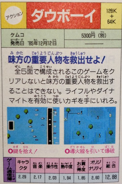 そのゲーム通信簿において『ダウ・ボーイ』の評価は12.88点であった。 この得点はなんと同誌のファミコンロムカセットで評価された中では最も低い点数なのだ。 そもそも評価されていないゲームもあるため断言はできないが、ほぼファミコンの中では最底レベルの評価を下されてしまったことになる。