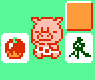 このぶたさんは同じジャレコのアーケードゲーム『ぶたさん』からの客演なのよ。 そっちは時限爆弾を投げ合うちょっと過激なバトルロイヤルだったけど、こちらは平和的で可愛さが強調されているわね。
