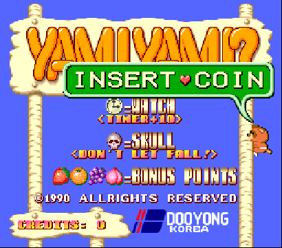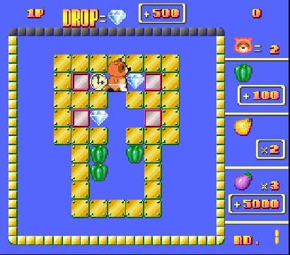 ちなみに本作はアーケード化されなかったけど、後に韓国のドゥヨン社からグラフィックを差し替えた『YAM! YAM!?』というゲームがアーケードでリリースされているよ。 こっちはタヌキがダイヤモンドをドアに入れるっていう形式になってるんだ。