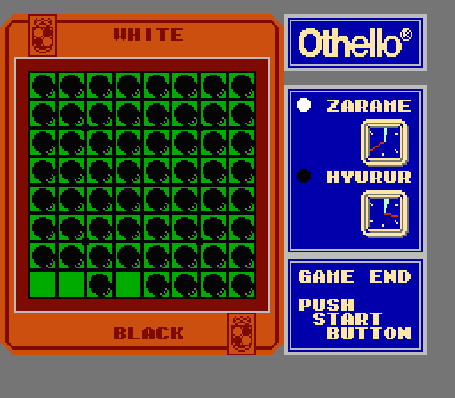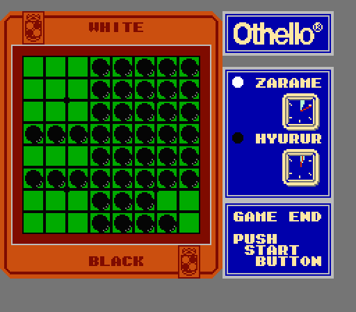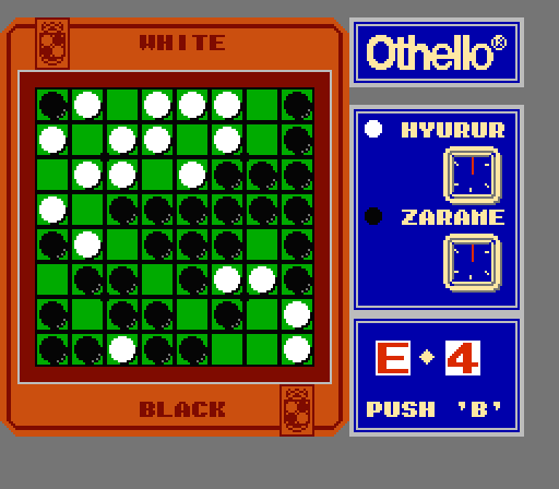 レベル4を倒すと隠しモードのレベル5が出現するのよ。 この時代のコンピューターオセロにしてはなかなか強いのよね。 さすがは技術力に定評のあるHAL研究所製といったところかしら。