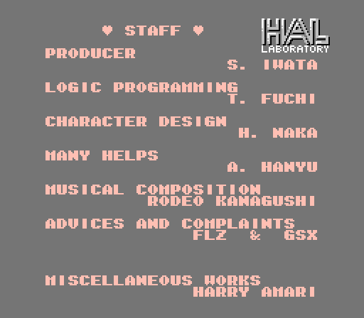 開発はHAL研究所だったんだ。 言われてみればスロットモードみたいな遊びもHAL研らしい感じだね。